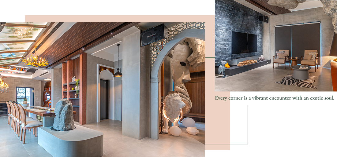 每一間房都融入非洲風格的元素:色彩鮮明的壁畫、手工陶盤、獨特的燈飾與細緻的空間氛圍,讓你在休憩時也能感受到異國的靈魂。