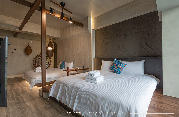 在 哈庫納馬塔塔,我們準備了六間各具特色的房間,雙人房與四人房交錯設計,既能滿足情侶、家庭,也能容納好友團體。